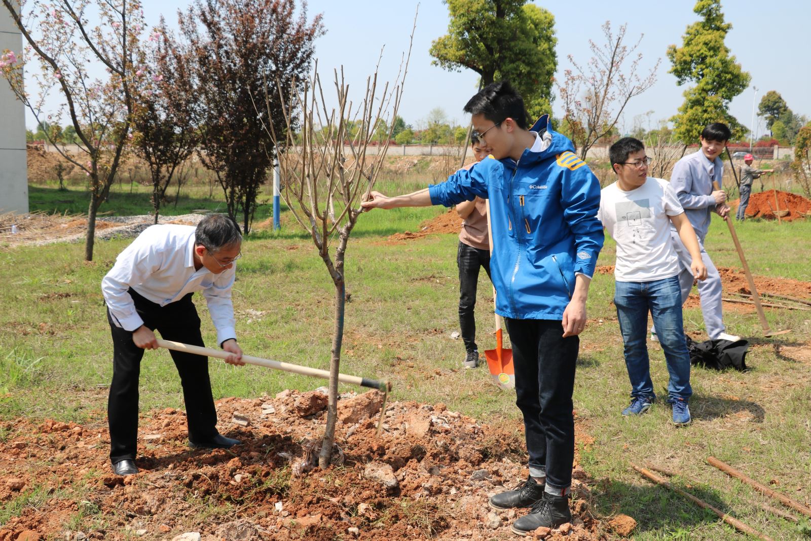 为美化校园环境、创建绿色校园,2017年3月27日13时,公司党总支书记胡爱钦、党总支副书记张建国及学办老师易苏、李娥君带领部分党员及员工干部干事于滨江空地开展植树活动,师生携手栽下了五棵樱花树树苗。