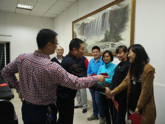 首先化工公司邓经理与海天公司副总孙总及人力总监庄总等共同回顾了双方近三年来的卓越工程师联合培养工作,邓经理对海天公司给予公司卓越计划工作的大力支持表示衷心感谢,尤其感谢海天公司对公司企业员工各方面的关心和指导,让员工们心有所定、学有所获;海天公司孙总及庄总则表示,通过与全国各本科院校的合作及比较,最终还是公司培养的员工综合素质最高,能解决企业实际生产问题,这样的合作真正实现了双赢,有利于长效开展。随后,邓经理及陈老师与海天公司轻化工程卓越计划11级至13级的员工进行了亲切交流,解答了部分员工在工作、学习、生活中的疑惑,鼓励公司员工不惧困难,安心工作,在泉州扎根,在海天扎根,为湖工争光,为公司添彩。最后,邓经理代表公司卓越工作办为海天公司的企业导师颁发了聘书,并进行了友好合影留念!