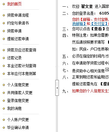 请需要续贷的同学在暑假放假前完成以上操作,请保证系统内所填信息的真实。如果有个人联系方式改变或需要补充的,可以系统的首页上 个人信息变更 进行操作,保证系统即使消息发送个人。