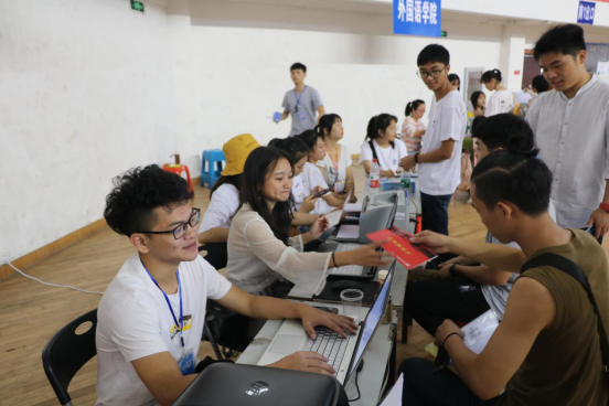 迎新志愿者队伍中,除了公司的员工干部外,还有爱心社发扬“把爱心献给社会,让真情温暖人间”的人文主义精神,专门组织了志愿者协助公司完成迎新工作,帮助2019级新生更快、更便捷地完成入学手续。