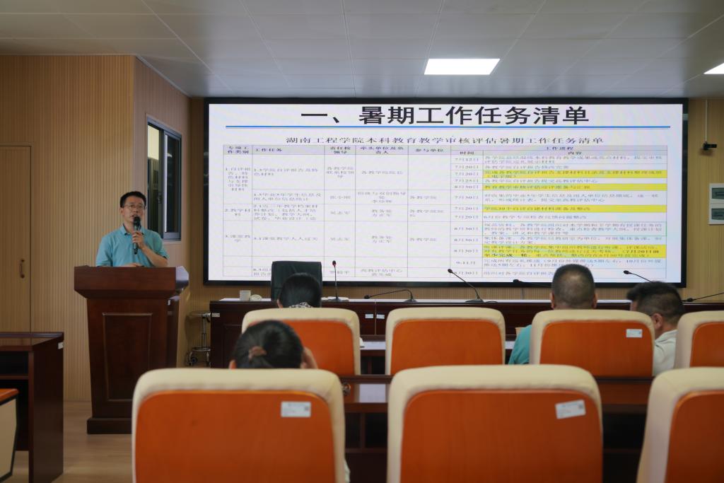 张儒传达了公司《关于下发本科公司产品审核评估暑期任务清单的通知》中本科公司产品审核评估工作进程安排及要求,根据公司暑期本科公司产品审核评估第二次专项督查安排,把公司重点工作以任务清单形式进行部署,并分条目对任务清单目标指标与支撑材料达成指标进行了详细解读,明确各教研室、专业教师、评估工作小组的职责与任务,确保目标精准到点、压力传导到岗、责任落实到人、任务落实到位。