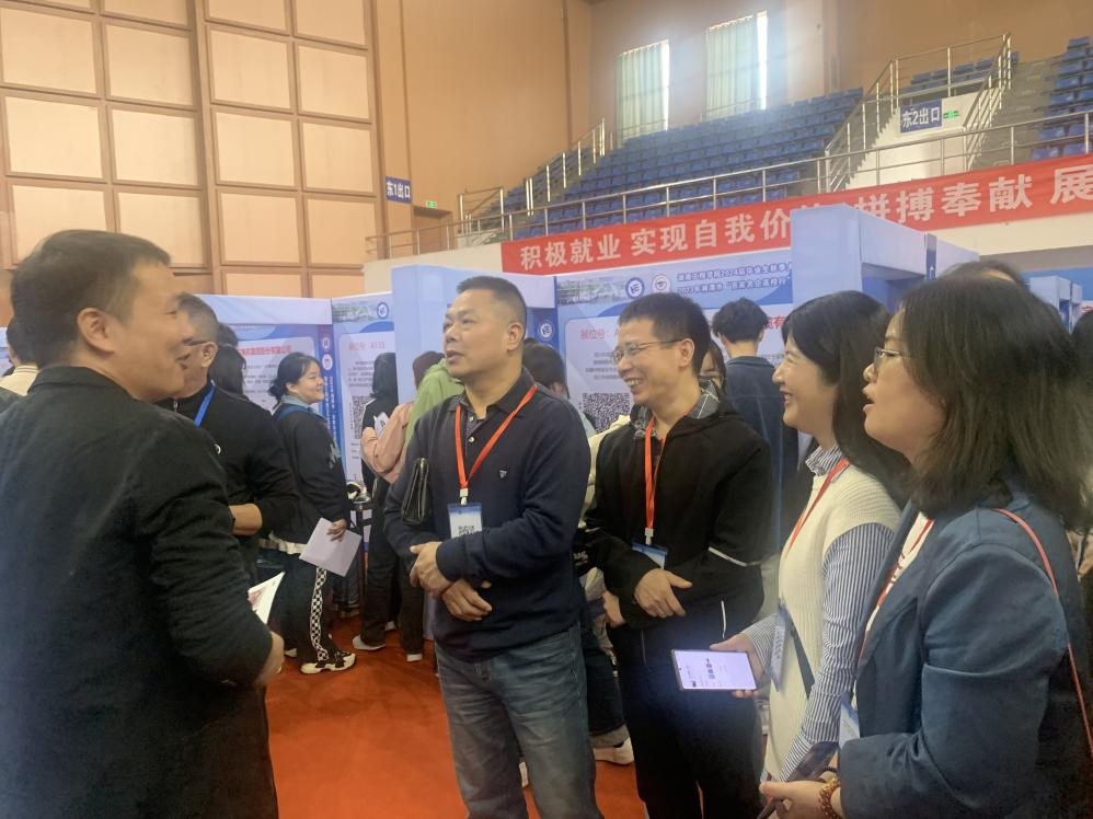 秋季大型供需见面会现场,公司领导班子深入会场与用人单位招聘代表交流,了解用人单位的专业需求和招聘计划,现场邀请相关企业来公司开展宣讲会。他们勉励毕业生找准定位,先就业再择业,尽早确定自己职业岗位。