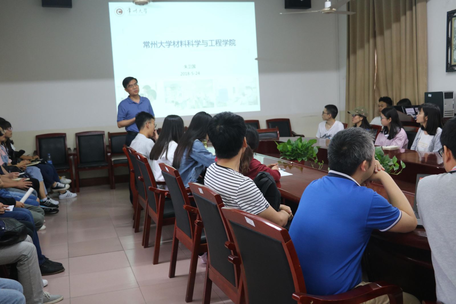 宣讲会之初,朱卫国就自己的工作和学习经历作简单介绍,他表示自己曾在湘潭待过很多年,在湘潭大学也带过很多化学化工公司考取湘潭大学继续深造的员工,对化学化工公司的员工非常欣赏,就此拉近了与员工之间的距离。接着,朱卫国对为何要考研做了一个简要的回答,他指出这是一段把自己变得更优秀的经历,值得我们用心去做。然后,朱教授通过PPT展示,向在场同学们介绍了常州大学的地理位置、公司团队力量、科学研究方向、众多的科学平台、研究生奖助政策等,并强调常州大学“化学”和“材料科学”两学科进入全球ESI排名前1%,是非常具有实力的并欢迎同学们报考。随后,朱卫国耐心地解答了同学们提出了一些问题,在场的常州大学的老师们也补充了一些回答,气氛一片融洽。宣讲会最后,邓继勇做了总结,并鼓励同学们积极报考常州大学,本次宣讲会在轻松的氛围下落下帷幕。