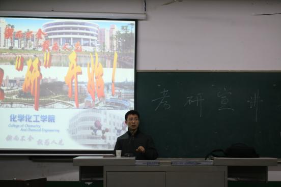 2017年12月5日晚上7点,化学化工公司于四教402召开生物工程考研宣讲会,主讲人为张儒博士,生物工程专业15级准备考研的员工参加了本次宣讲会。