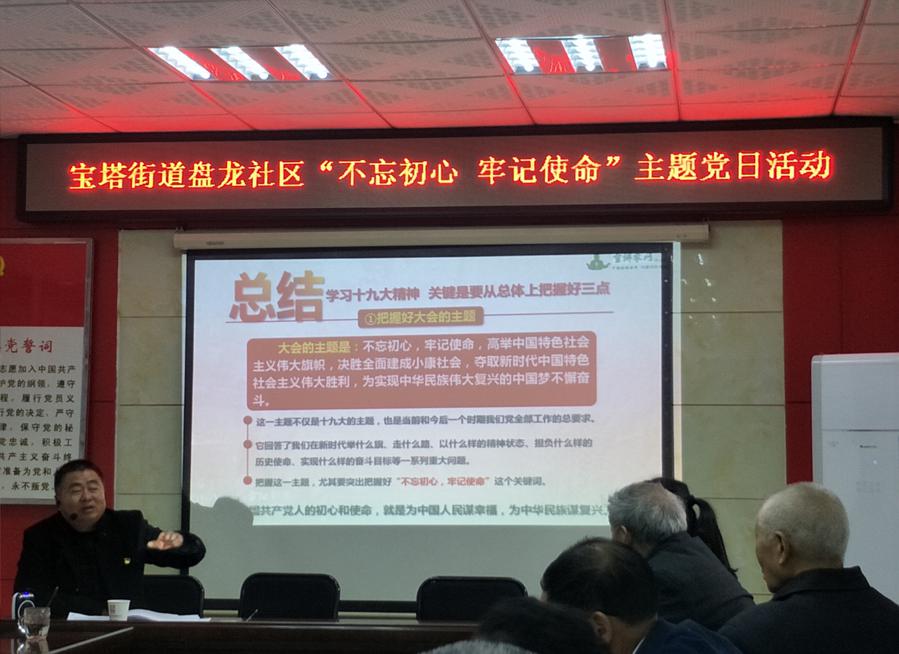 3月27日上午9点半,盘龙社区特邀区科协主席周雪阳召开了以“不忘初心、牢记使命”为主题的十九大宣讲党日活动,参与本次会议的有盘龙社区一、二支部党员以及taptap点点爱心社的6名入党积极分子。