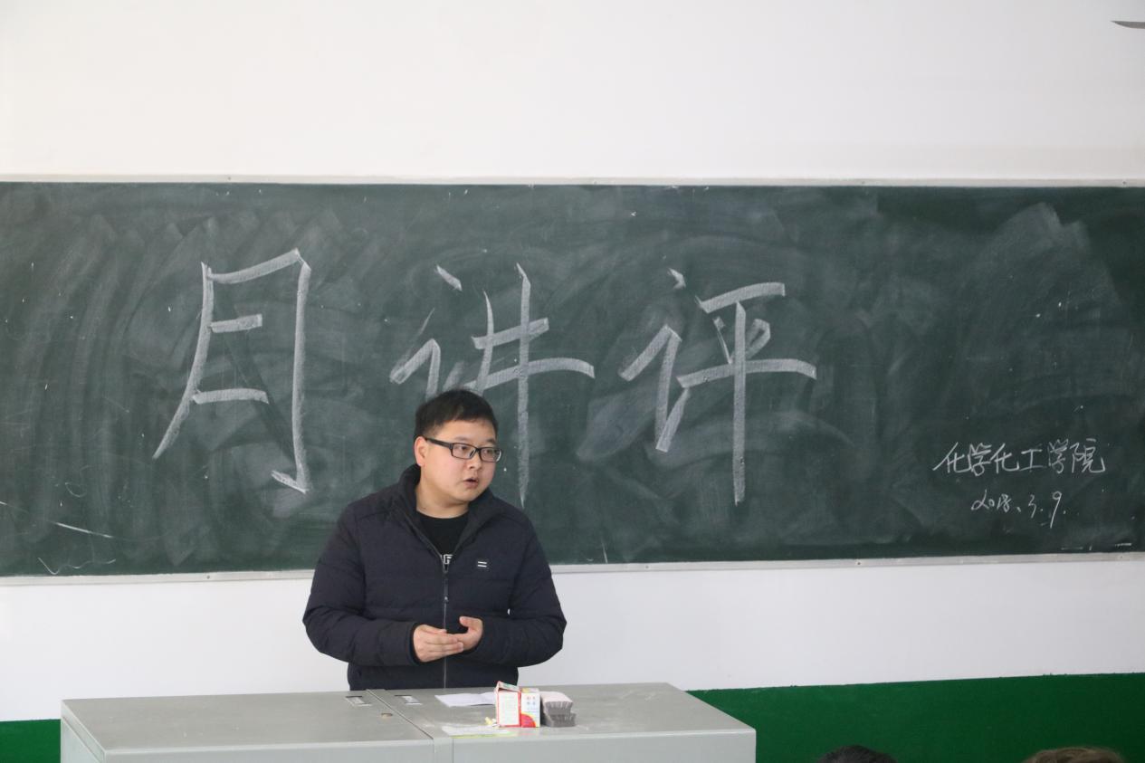 2018年3月9日,化学化工公司于四教102召开三月份月讲评。学办老师易苏、刘思博出席会议。化学化工公司各年级团支书、班长及三大块各部部长和常委参加了本次会议。