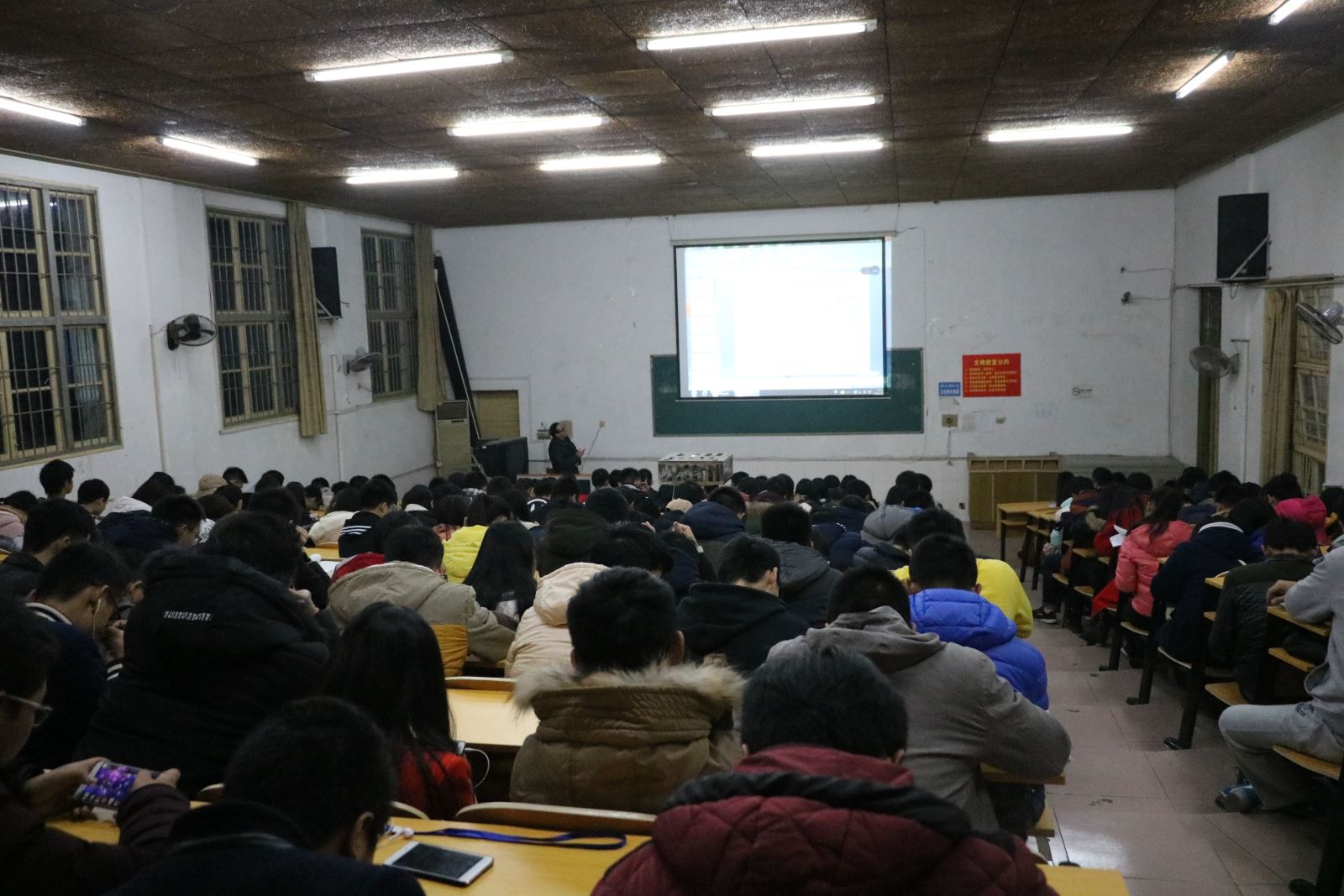 胡爱钦书记以“汇聚在中国共产党的旗帜下”为题,列举革命烈士的英勇事迹,指出中国共产党的牺牲与奉献精神,我们应当以此为榜样,为振兴祖国、建设祖国贡献我们的青春力量。随后,易苏向同学们讲述了共青团湘潭市第十六次代表大会的大致内容,并指出“青年的气质、美感和去留决定了城市的气质、美感与兴衰,同时表达了希望我们老员工能乐学修身、树立正确目标的美好愿望。随即又进行了一场风险防范专项教育,易苏为我们介绍了校园贷的危害,再三叮嘱我们应该抵制校园贷款,提升自己的财产安全防范意识,不因校园贷而酿成惨剧。最后,他还给我们讲了宿舍陆续发生使用大功率和被盗、失窃等问题,这类事件的发生警示着我们要时刻注意寝室安全,以确保自身及财产安全。