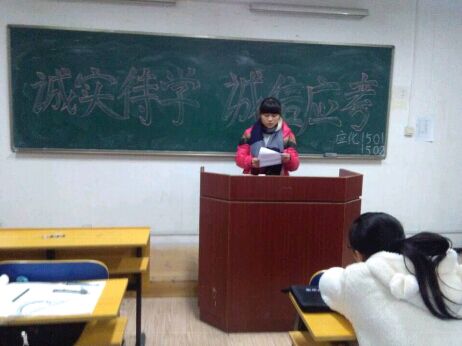 化学化工公司设立诚信考试试点考场。考室将在讲台设立诚信手机袋,全体考生需要将手机放入诚信手机袋中,班上主要班干部与员工干部坐在前排参试,做模范带头作用。监考老师十分支持诚信考试,并表示希望扩大影响,倡导全校员工诚信应考。