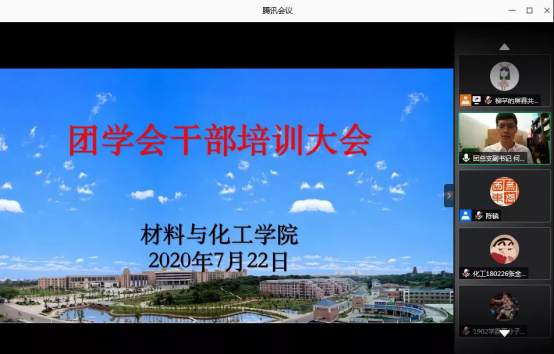 7月22日,公司举行团学会干部培训大会,公司党委书记李艳红、副书记陈镇、全体辅导员及老一届员工干部代表、新一届团学会干部在线参会。会上,易苏主任宣读团学会主席团及主要干部名单,原团总支副书记生物1701班赵卓和新一届员工干部代表现任团总支副书记应用化学1801班何清海发言。随后,陈镇和李艳红分别讲话,并对员工干部提出具体希望和要求。