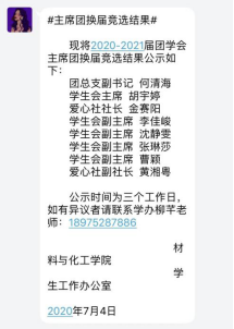 7月3日,公司2020-2021届团学会主席团换届竞选大会采用线上方式举行。公司党委书记李艳红、副书记陈镇、全体辅导员、上一届主席团成员、竞选人及现任干部、干事、各班级主要班委参加了大会。通过线上竞聘演讲,主要考察了竞选人的基本情况、竞聘优势、工作计划等。最后选举出以何清海为团副的八人主席团。