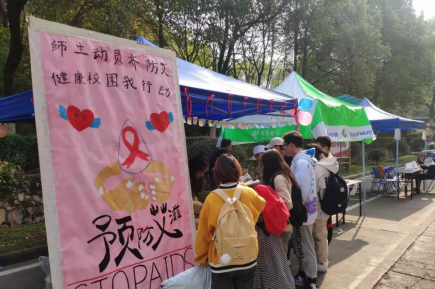12月1日,taptap点点团学会在校园多处设点进行防艾教育宣传活动。活动期间,同学们不仅深入了解了预防艾滋的基本知识,还表达了对艾滋病病人的鼓励和祝愿。