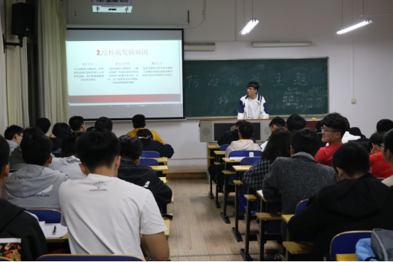 班会活动中,各班以视频、PPT、知识问答等形式开展宣传活动。班会主要内容为肺结核病的危害性、发病主要症状、主要传播途径以及治疗肺结核病的相关注意事项和误区四个方面。首先,通过PPT的放映,员工可初步了解到肺结核病的定义。然后,通过播放有关肺结核病防治的视频,员工可进一步了解到肺结核是长期严重危害人民群众身体健康,主要通过呼吸道传播的慢性传染病以及相关肺结核防治的冷门知识。最后员工通过积极参与相关肺结核病防治的问答环节,认真学习并巩固了防治肺结核病的相关知识。本次防治肺结核班会也要求员工从以下三点做起,有效预防结核病的感染:一是要养成良好的卫生习惯,勤洗手,勤换衣,不随地吐痰;二是要注意健康饮食,均衡营养,每天保证充足的睡眠;三是要多加强体育锻炼,提高抵御疾病的能力。