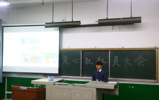 此次社员见面大会主要内容是向18级爱心社新社员介绍爱心社的历史、爱心社五个部门的职能、各项爱心活动、推选各院爱心负责人以及爱心社社员宣誓。大会伊始,爱心社社长封文斌详细地介绍了爱心社的悠久历史,并深度诠释了“把爱心献给社会,让真情温暖人间”的社团宗旨。副社长贺根明、李文分别讲述了爱心活动的意义与价值。随后,五个部门的部长分别上台跟新社员介绍了各个部门的职能。本次大会还邀请了纺织工程17级老社员分享个人经历与动人时刻。大会最后进行爱心社社员宣誓,将大会推向高潮。