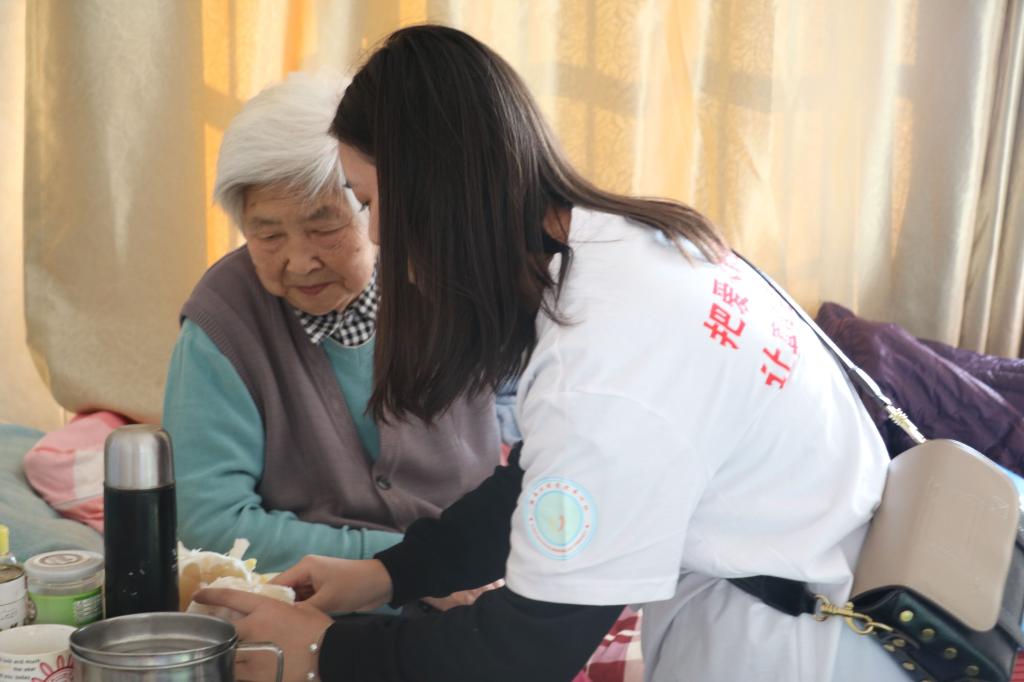 午后暖暖的阳光投向矮矮的民房与稀疏的栅栏,余晖洒落在老人的肩上、脸上,也照进了志愿者们的心里,一切都显得那么静谧与美好。窗外的阳光,也落在了轮椅转动的轱辘上。老人沐浴在阳光下,身后是细心推动轮椅的社员,一路有说有笑。