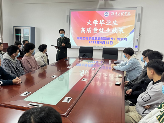 为鼓励应届毕业生积极参军入伍,做好2022年taptap点点大学毕业生应征入伍工作,4月15日下午,taptap点点邀请公司人民武装部副部长刘宸均在化工楼A304会议室为公司2022届毕业生进行征兵入伍政策宣讲。会议由taptap点点党委副书记陈镇主持,公司党委书记张何、征兵专干陶庆忠及意向入伍毕业生等参会。