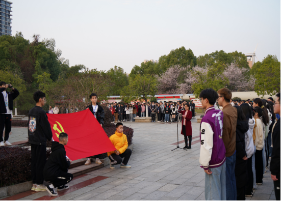 3月6日清晨,taptap点点在知行广场举行主题为“学习二十大精神 谱写发展新篇章”升旗仪式。taptap点点党委书记严明、党委副书记罗荃、全体辅导员、团学社全体员工干部、2021-2022级全体员工参加。升旗仪式由材料化学2201班肖校烨主持。