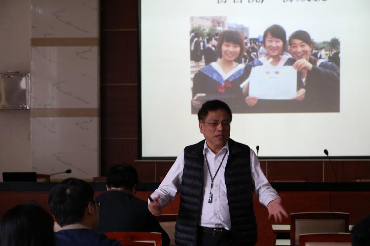 会仪始时,区教授提出了为研究论文选题必须是能如期完成的题目、对自己未来就业有益的题目以及造就自己未来就业的题目。随后,区教授用金庸八十高龄却依然坚持做自己能做到的事为例,以此来告诫同学们要学会坚持,不能轻言放弃。紧接着,区教授特别提醒同学们在选题时要注意,不要选择有争议的题目,选好题目后应及时回顾和构思、要进行初步的探讨和调查,同时也要注意所选题目是否是自己所喜欢的。最后,区教授告诉我们中国梦正在实现,一带一路横贯亚欧,机遇就在我们面前,同学们要好好把握。会议最后,同学们向区教授进行提问,区教授也细致地回答了同学们提出的问题。