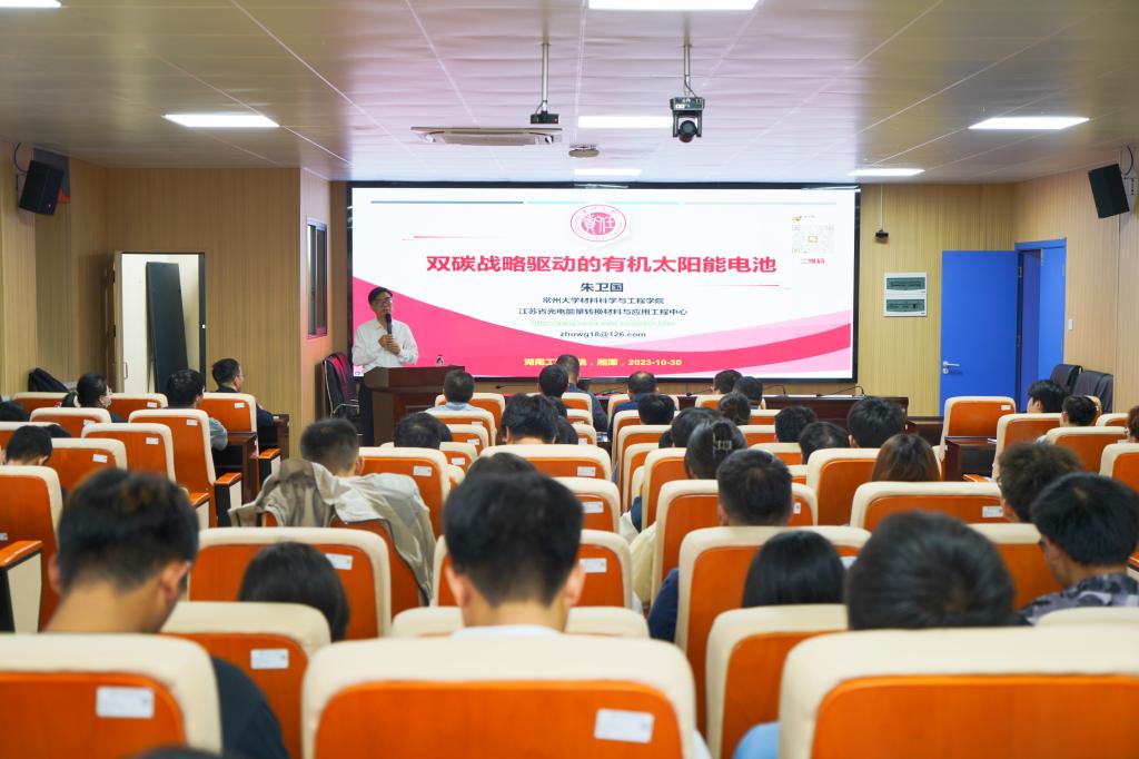 10月30号下午,国务院特殊津贴专家、江苏省“双创计划”高层次人才、湖南省杰出青年基金获得者、常州大学朱卫国教授受邀来校,在材化楼A301作题为“双碳战略驱动的有机太阳能电池”专题学术讲座,吸引了taptap点点众多师生参加。讲座由taptap点点经理邓继勇主持。