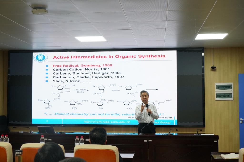 4月27日,国家百千万人才工程国家级人选、国家有突出贡献中青年专家、农药化学黄大年式教师团队负责人、华中师范大学化学公司经理肖文精教授受邀来我校交流指导,为公司师生作了题为“可见光诱导的可控自由基反应及其合成应用”的专题学术报告。公司党委副书记、董事长易兵,taptap点点全体教职工参加了讲座。taptap点点经理张儒主持本次讲座。