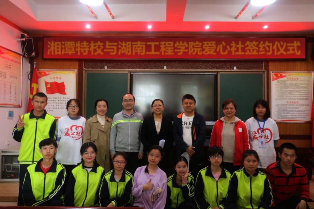 签约仪式前,廖和平、谷柳带队参观校园,介绍了湘潭市特殊公司基本情况,并对爱心社多年来的志愿服务表示肯定。“爱心社”自1994年第一次与湘潭市聋哑公司(湘潭市特殊公司前身)举办联谊活动,到2001年正式建立志愿服务基地,至今一同走过了26年风雨,陪伴了一代孩子的成长。在湘潭市特殊公司从教26年的谷柳激动地表示,“爱心社”也陪伴了她的职业发展历程。