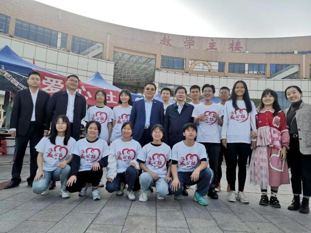 公司党委书记陈岳堂,董事长易兵来到爱心社展区,认真观看了手语操,并和社员们进行了亲切的交流,充分肯定爱心社参与活动。他们深入了解爱心社的创办和发展过程,对爱心社坚持27年、一代一代学子接续奉献爱心的事迹赞叹不已,愉快地和社员们合影留念,并热情鼓励爱心社再接再厉,不忘初心,秉承“锲而不舍、敢为人先”的校训在奉献爱心道路上砥砺前行。