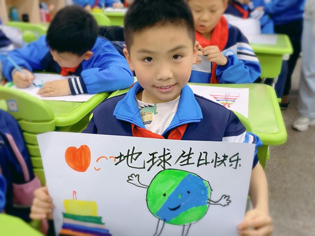 “姐姐,这是我画的地球,她有一张笑脸……”通过学习,小员工们带着对地球的新认识,开始在纸上画出心中地球的样子。他们拿出画笔,发挥想象,在纸上画出了各式各样的作品,他们用作品表达着对地球美好的祝愿。