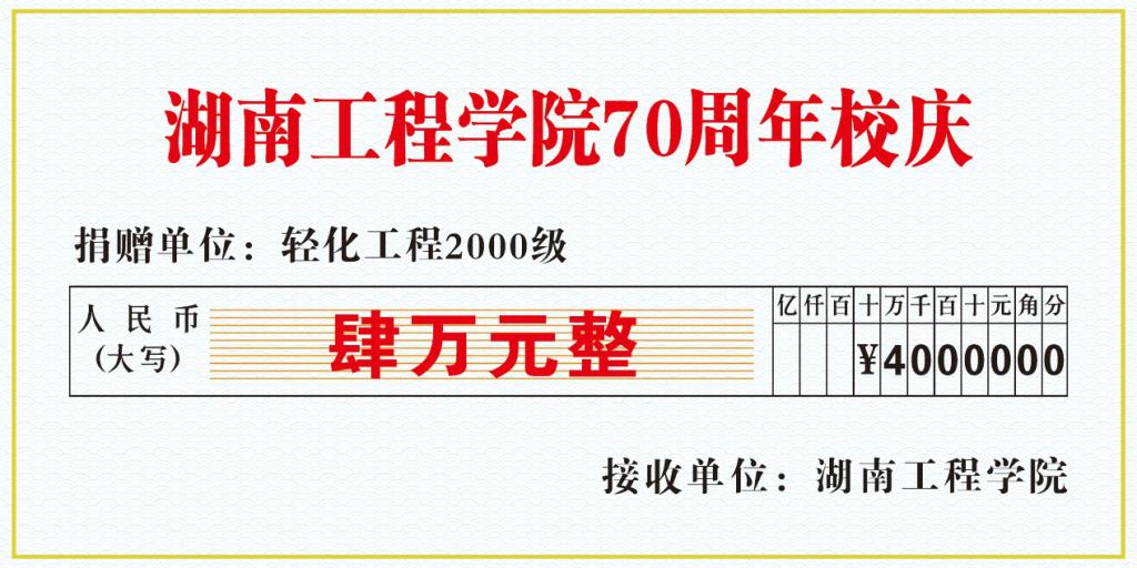 近日,公司收到轻化工程2000级向母校建校70周年捐款4万元。