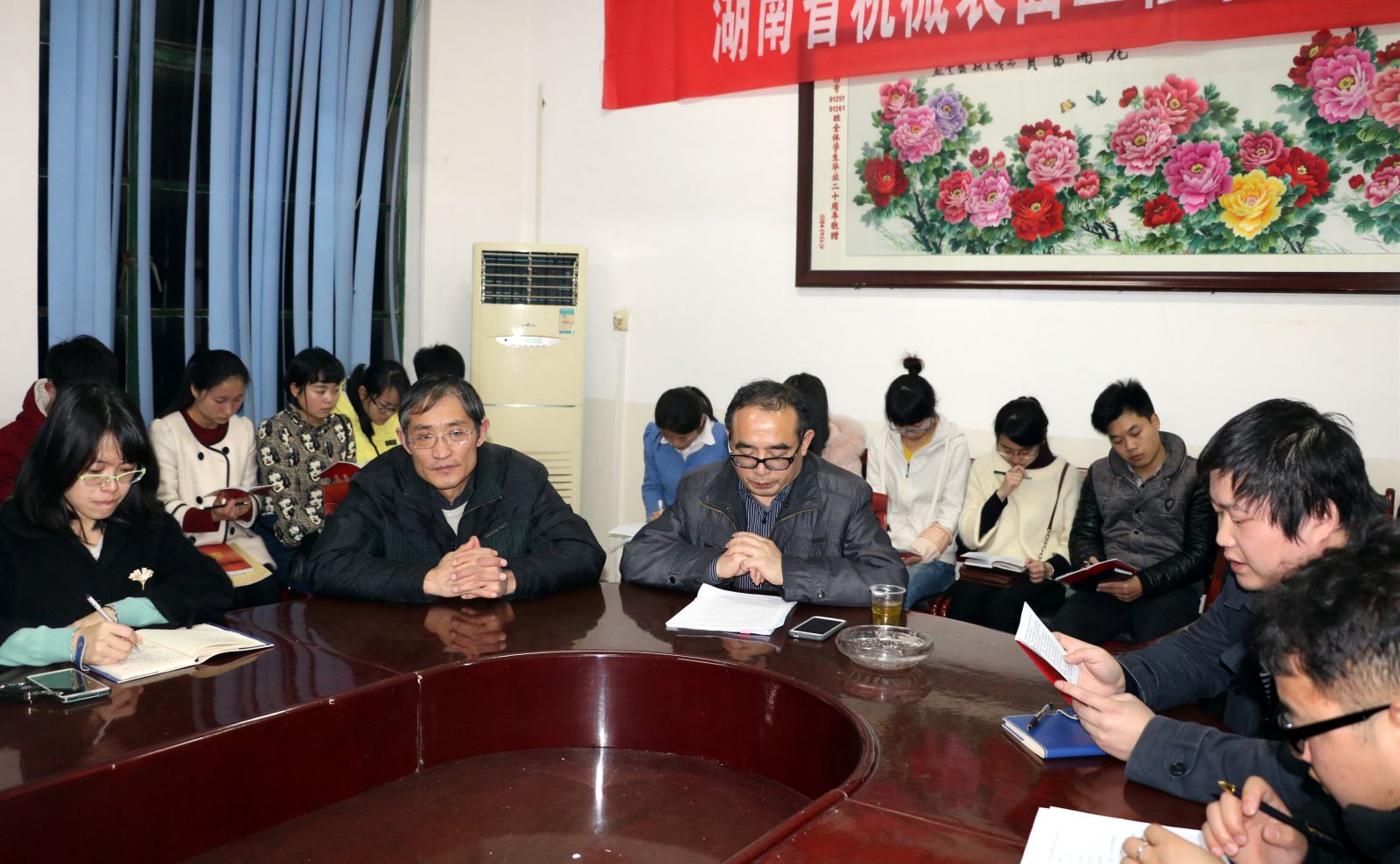 3月23日晚7点,化学化工公司员工党员在四教306召开了党章集中学习会议暨民主评议会。化学化工公司党支书记胡爱钦、副书记张建国出席会议。员工一支部书记李芳郴、二支部书记易苏、三支部书记刘思博老师以及化学化工公司全体在校员工党员参加会议。本次会议由李芳郴主持。
