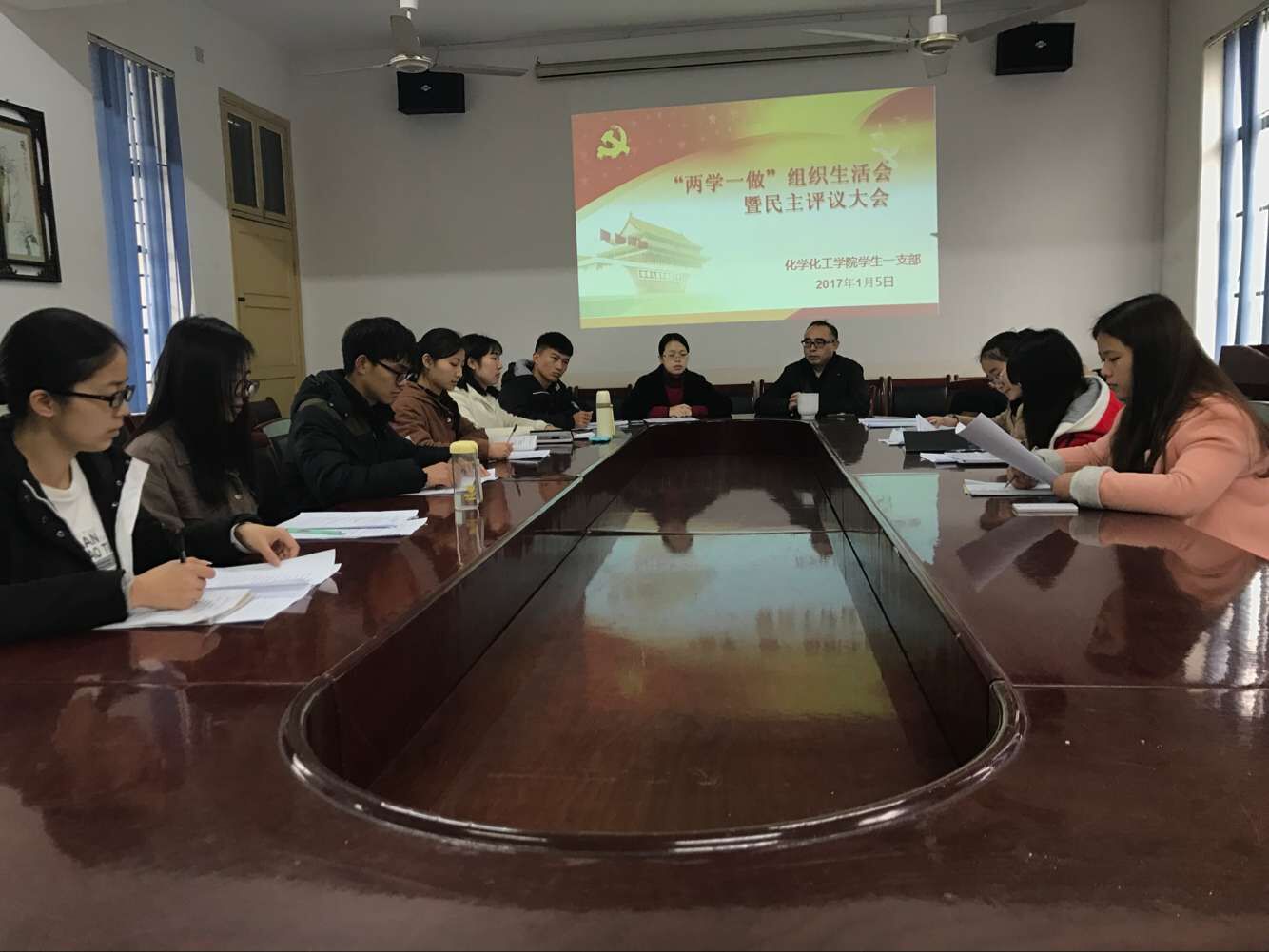 为进一步发扬党的优良传统,保持党支部全体同志的先进性,化学化工公司员工第一、第二、第三党支部全体党员于2017年1月5日,在四教学楼开展“两学一做,四讲四有”批评与自我批评组织生活会暨党员评议大会。此次会议分别由各支部书记主持,化工公司党总支书记胡爱钦、副书记张建国莅临本次会议。