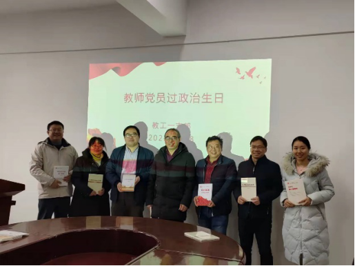 公司党委书记张何和教工第一、二支部书记刘万民、张儒为过“政治生日”的党员同志送上了书籍礼物。