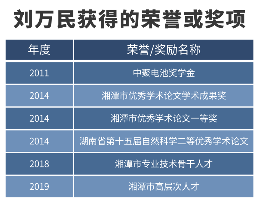 人物名片:刘万民,男,中共党员,博士,博士后,副教授,硕士生导师,Aalborg University(丹麦)国家公派访问学者,湖南省普通高校青年骨干教师,中国创新创业大赛评审专家,湖南省、江西省科技专家库专家,湖南省科技咨询与评审专家,湖南省自然科学基金评审专家,湖南省高新技术企业认定评审专家,湖南省技术标准创新促进会专家委员会专家,湖南省电源标准化技术委员会首届委员,湘潭市科学技术局与知识产权局科技专家,湘潭市科技创新智库专家,湘潭市科技特派专家,湘潭市专业技术骨干人才,湘潭市高层次人才D类(高级)人才,taptap点点化学学科学术带头人、材料工程系系主任,“环境催化与废弃物再生化”湖南省重点实验室与“环境功能材料与污染控制”湖南省高等公司科技创新团队核心成员,湖南灿溪新材料有限公司技术总监,Journal of Power Sources、Electrochimica Acta、Journal of Alloys and Compounds等国际权威期刊审稿人。
